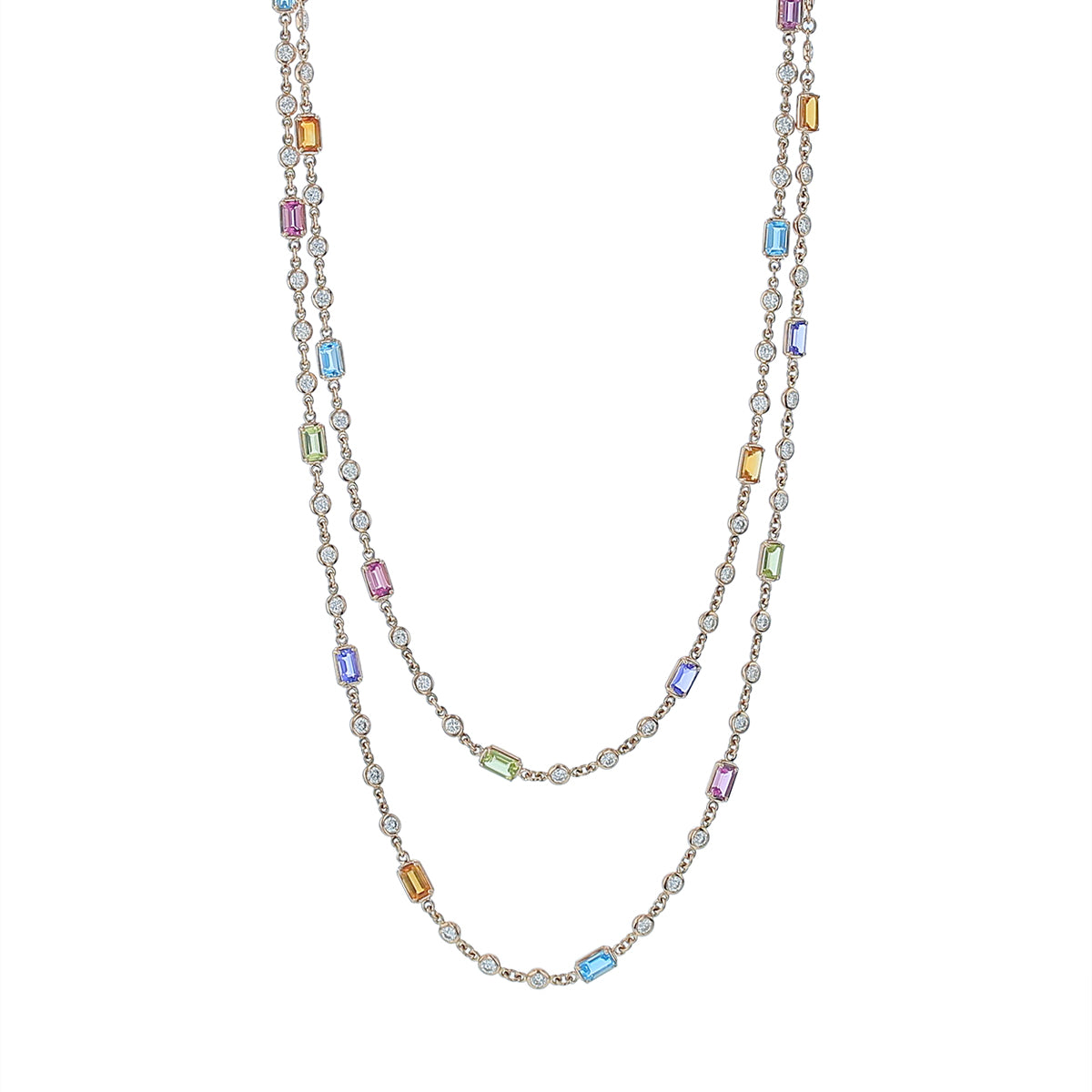 4.10ct Diamond and 7.13ct Mixed Stone Eyelet Necklace in 18K Rose Gold, 34"