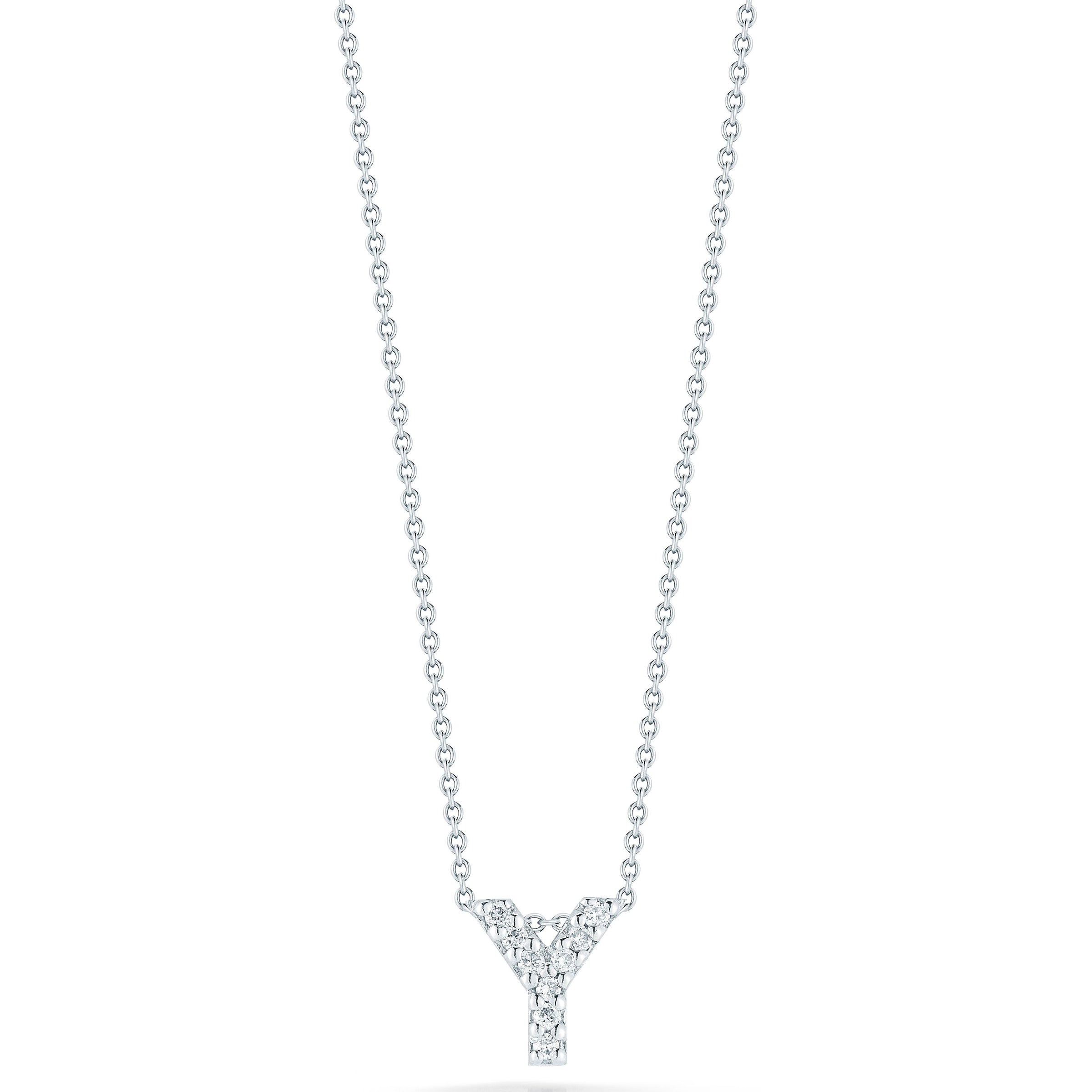 Tiny Treasures 0.04ct Diamond Love Letter "Y" Pendant in 18K White Gold, 16-18in