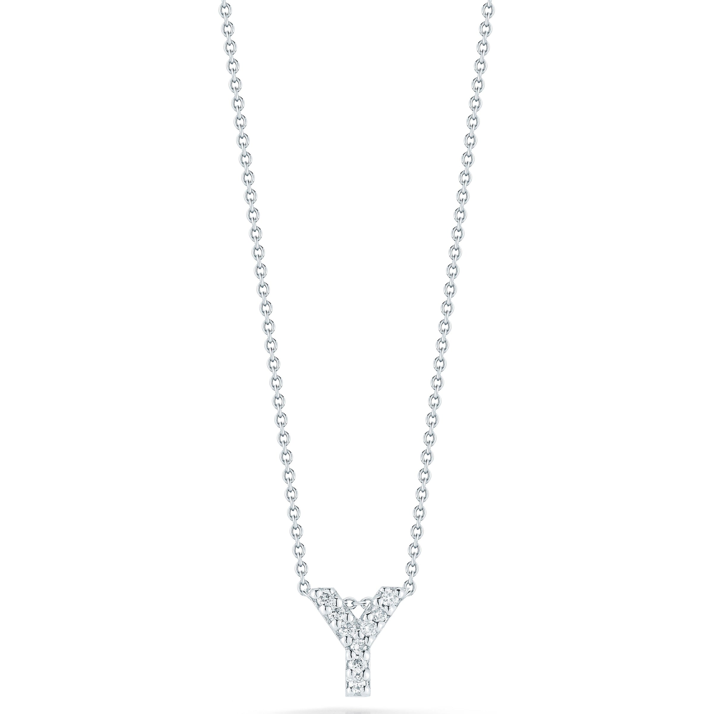 Tiny Treasures collection 0.04ct diamond "Y" love letter pendant crafted from 18K white gold, on a 16-18 inch chain.