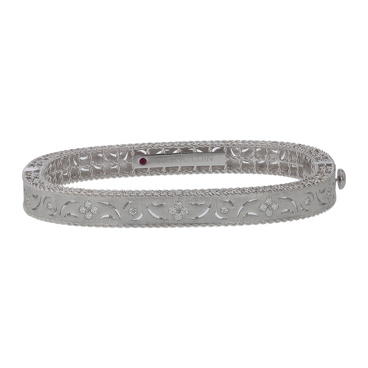 Venetian Princess 1.00ct Diamond Flower Bangle Bracelet in Black Enamel and 18K Yellow Gold