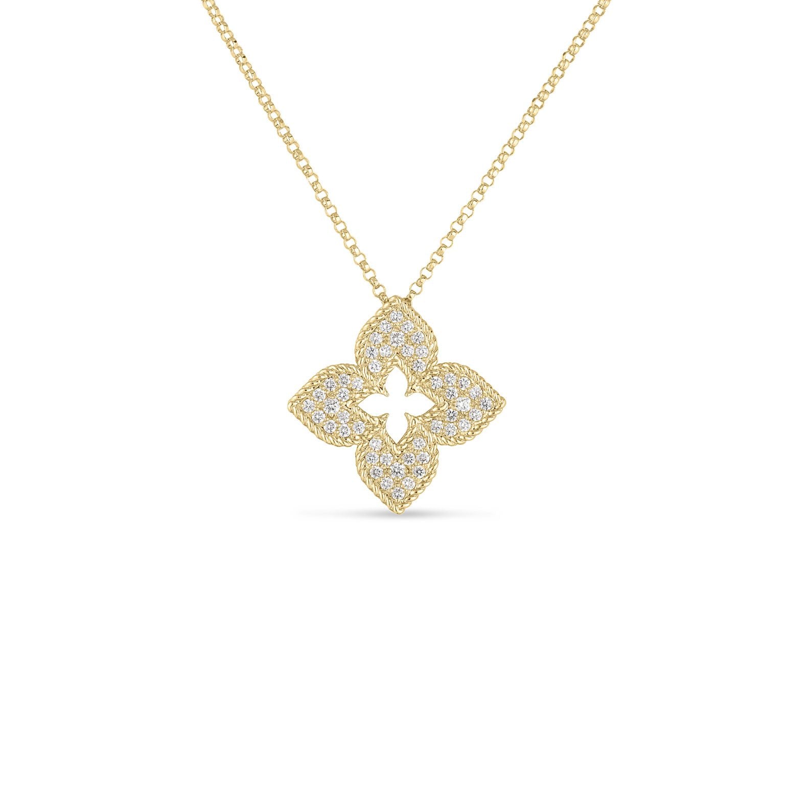 Jasmine 0.06ct Diamond and Mother of Pearl Flower Pendant on Chain in 18K Yellow Gold, 18"