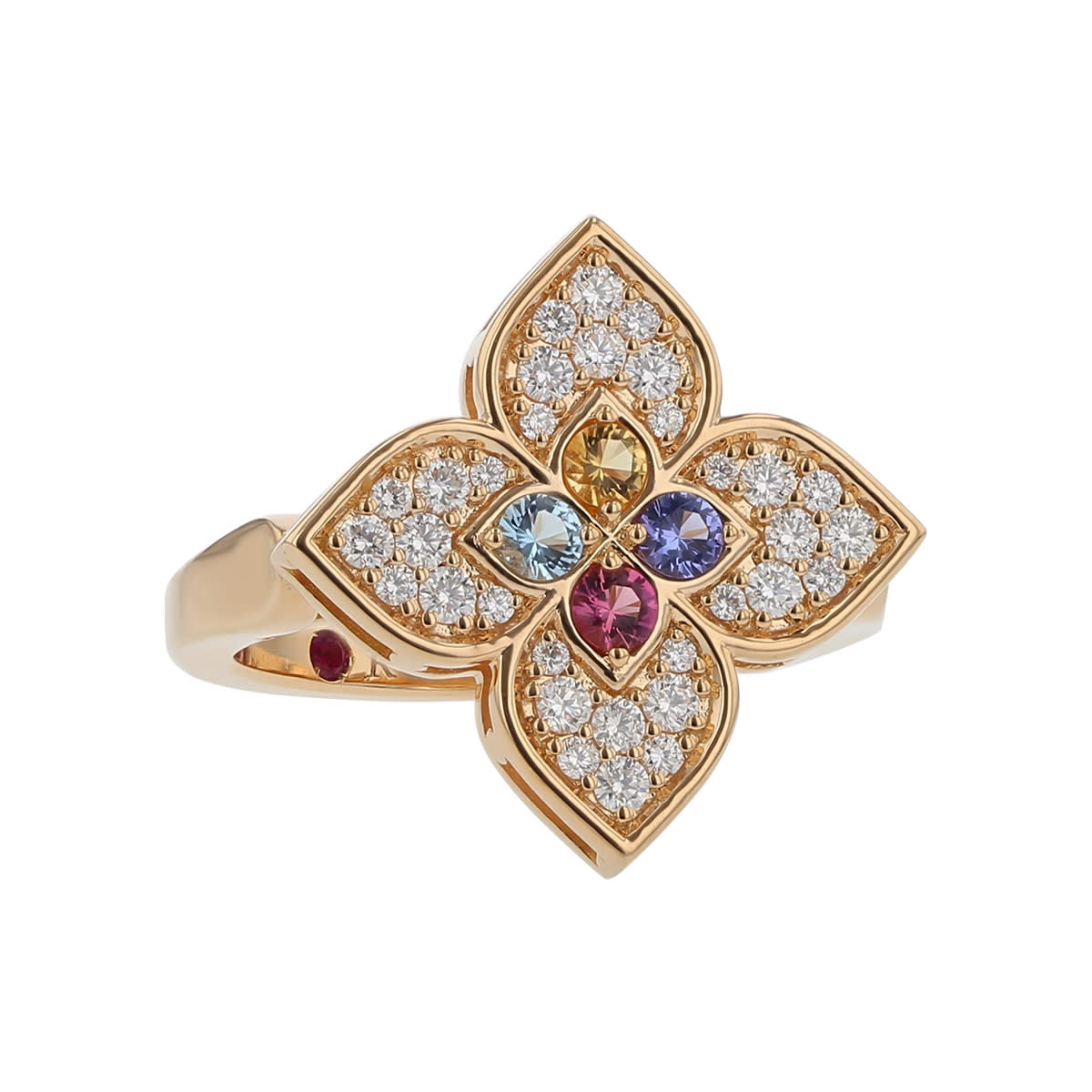 Venetian Princess Diamond and Multicolor Gemstone Flower Ring in 18K Rose Gold, Size 6.5