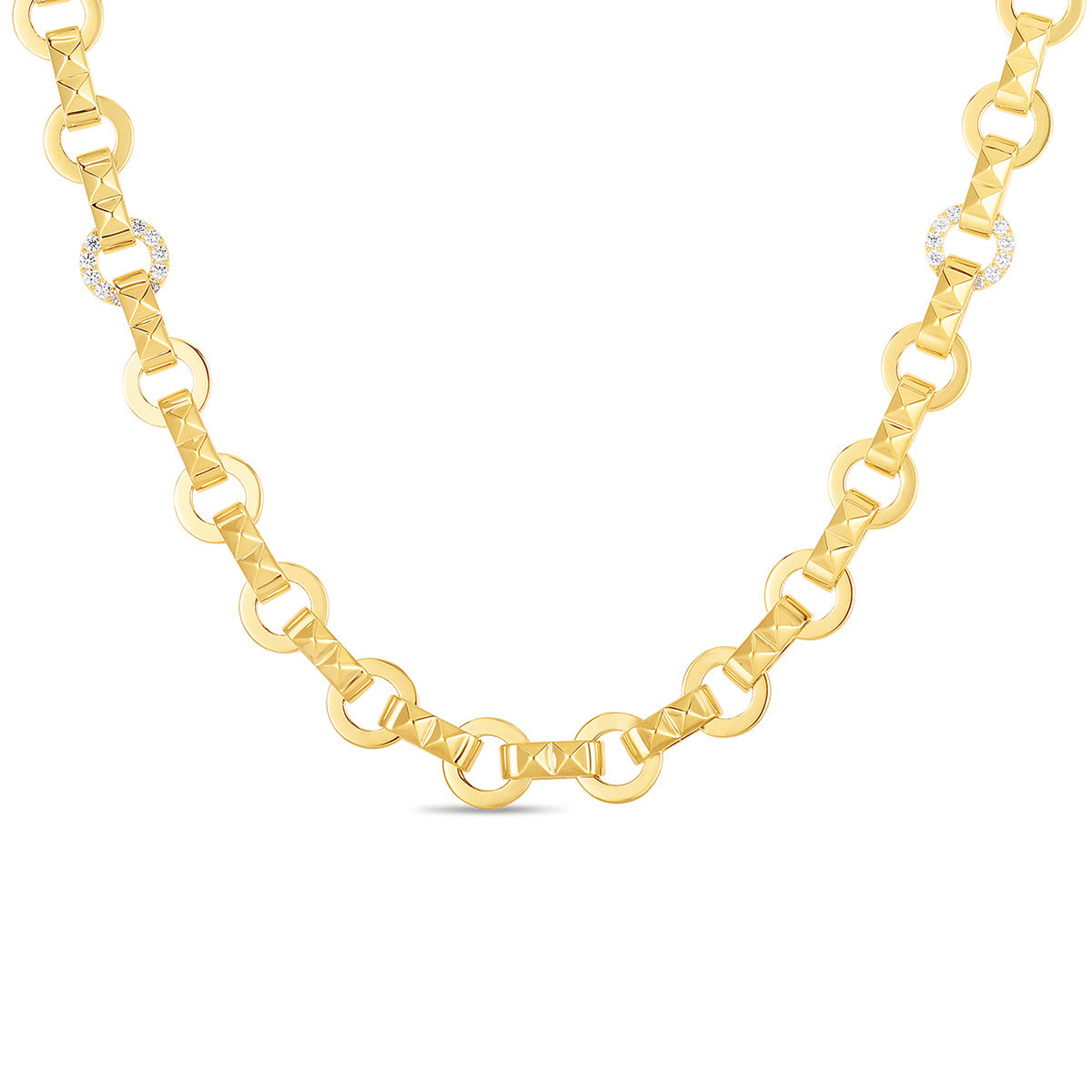 18K Venetian Princess Satin Medallion with Diamond Accent Coin Edge Detail on Link Chain