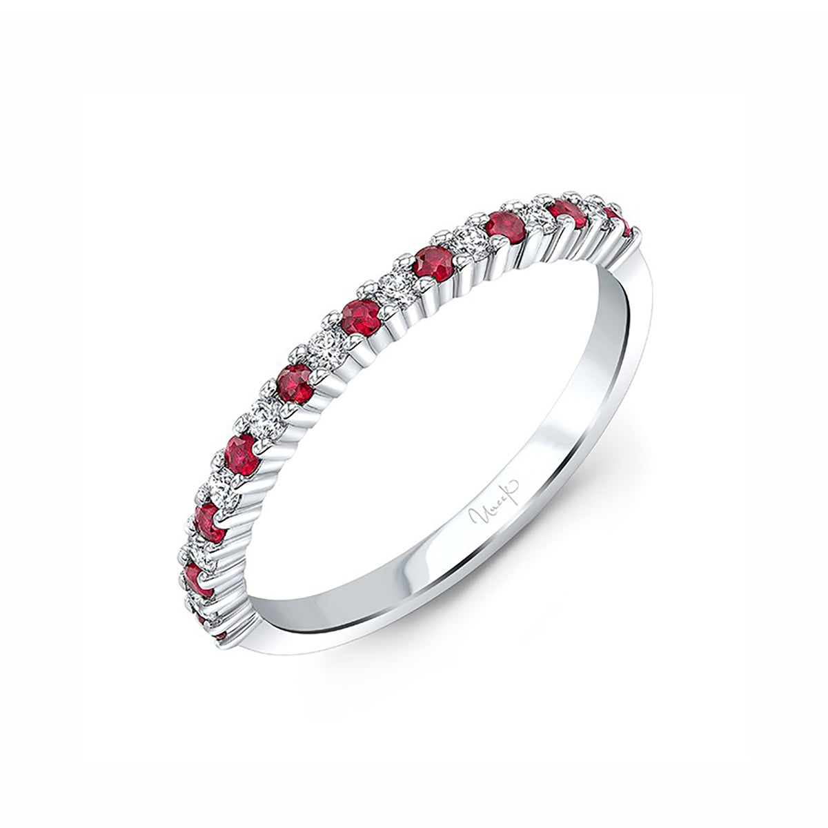 0.17ct Ruby and 0.11ct Diamond Alternating Band in 14K White Gold, Size 6.5