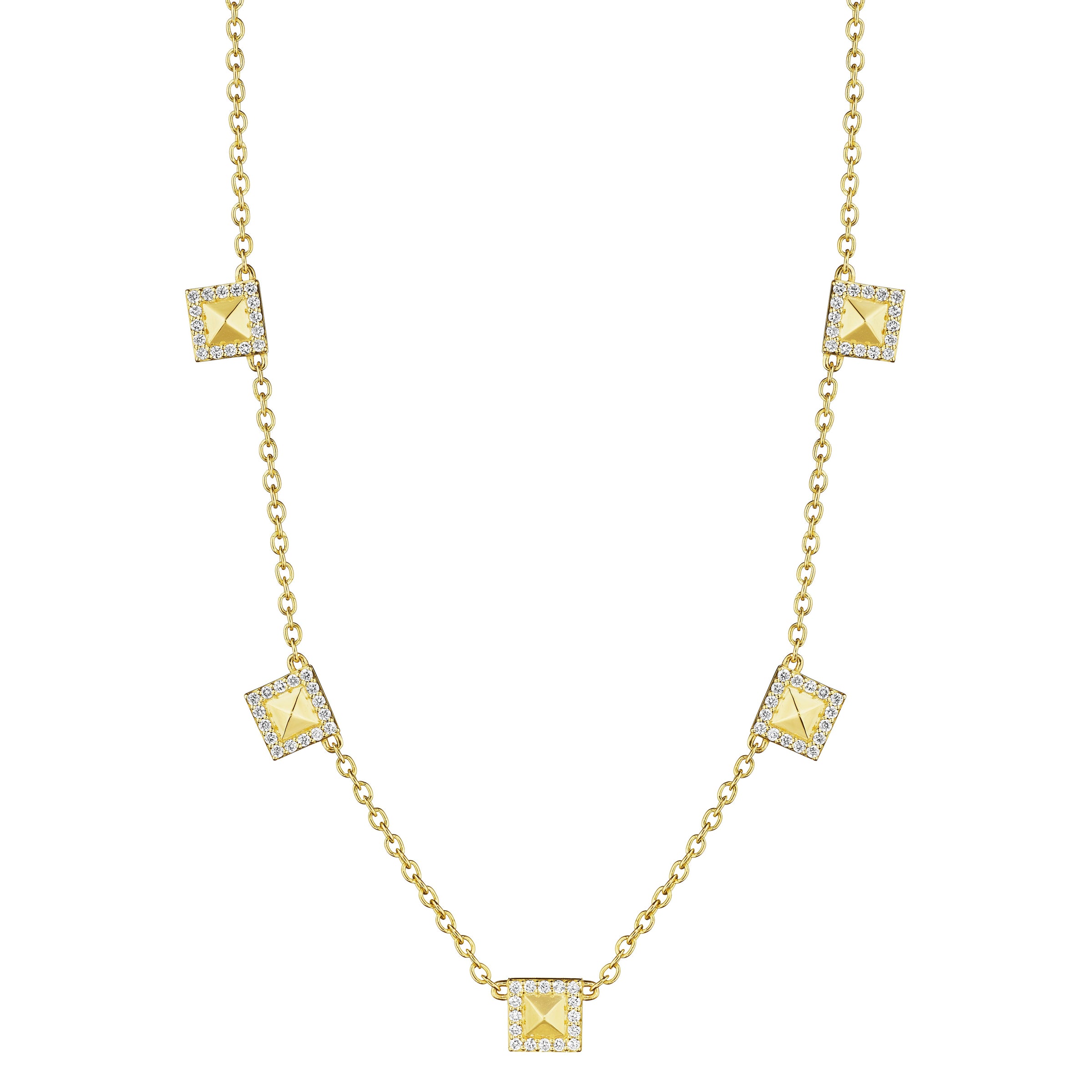 0.40ct diamond square station necklace set in 18K yellow gold, 18 inches.