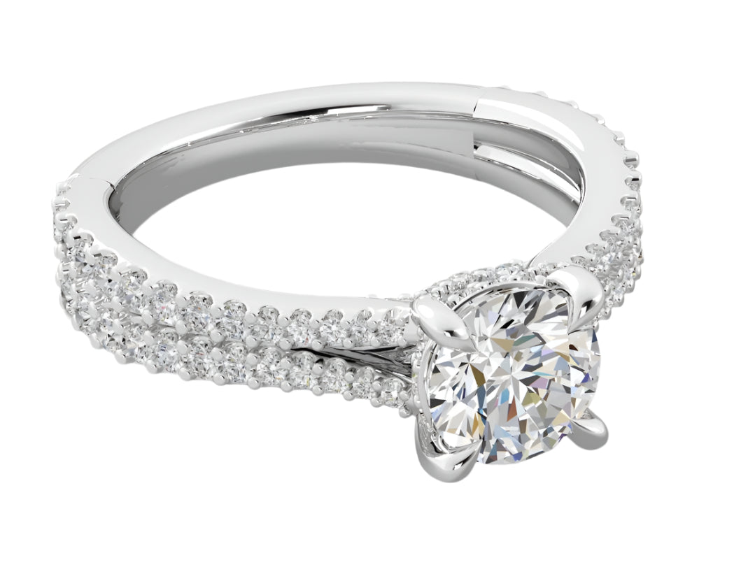 0.75ct Diamond 2 Row Shank Ring Semi Mount in Platinum for 1.25ct Round Center. Mount only; center stone not included.