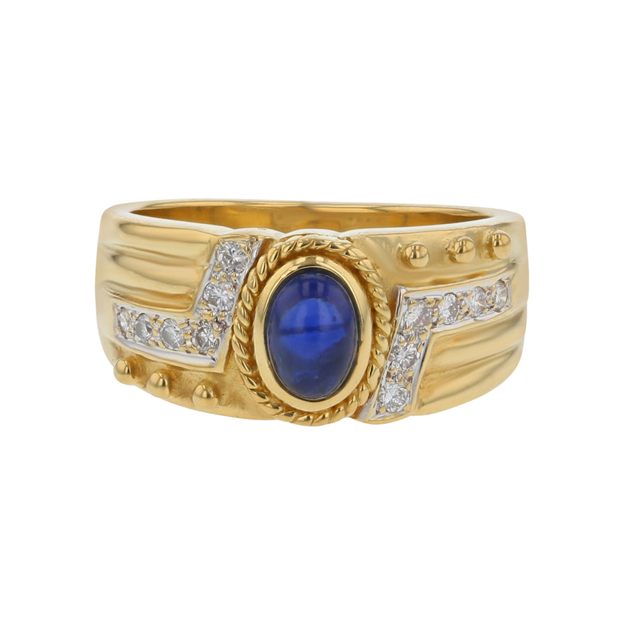 Ring with a 0.99ct cabochon sapphire and 0.18ct diamonds, crafted in 18K yellow and white gold, size 6.