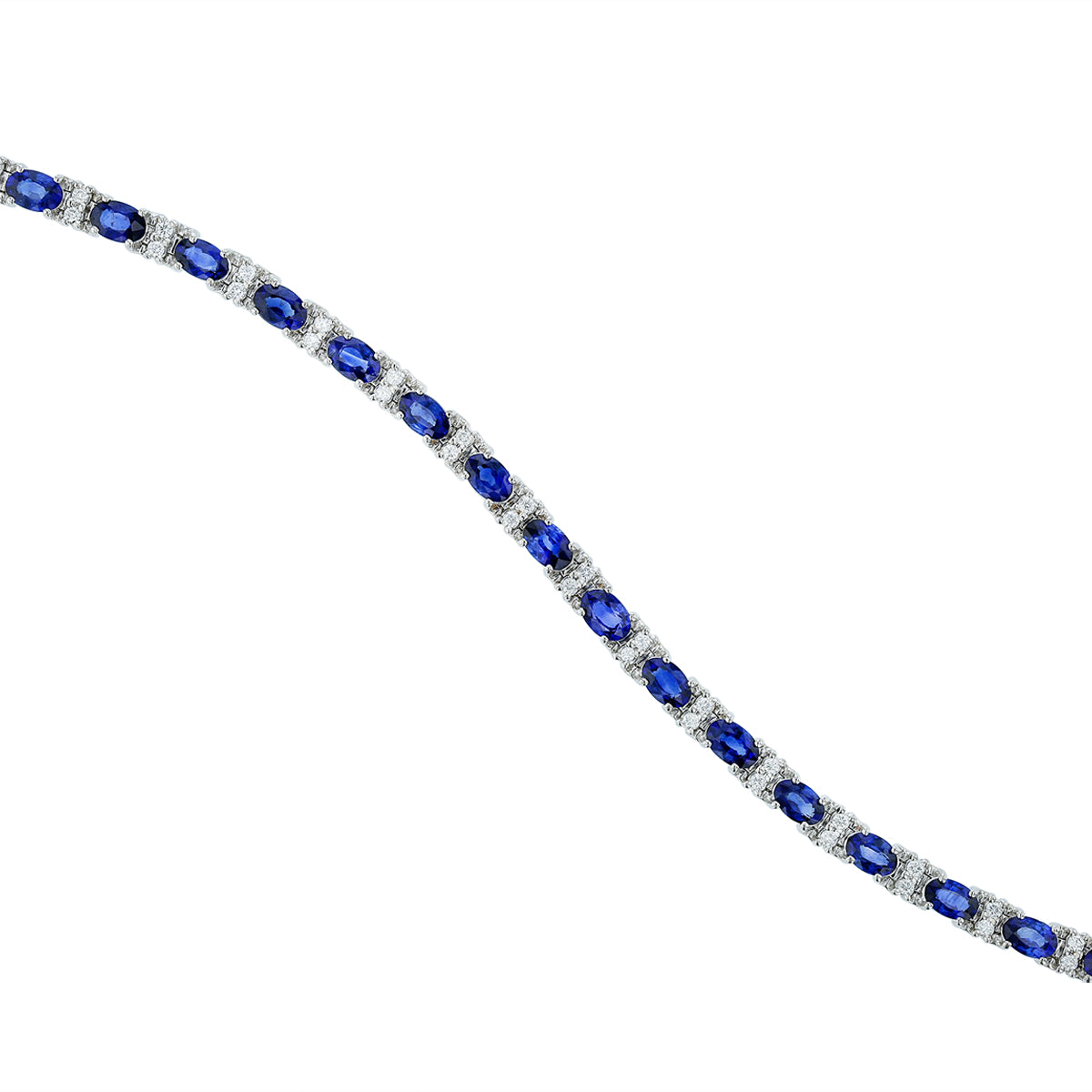 Line bracelet with 11.23ct sapphires and 0.99ct G-H/VS2-SI1 diamonds, crafted in 18K white gold, 7 inches.