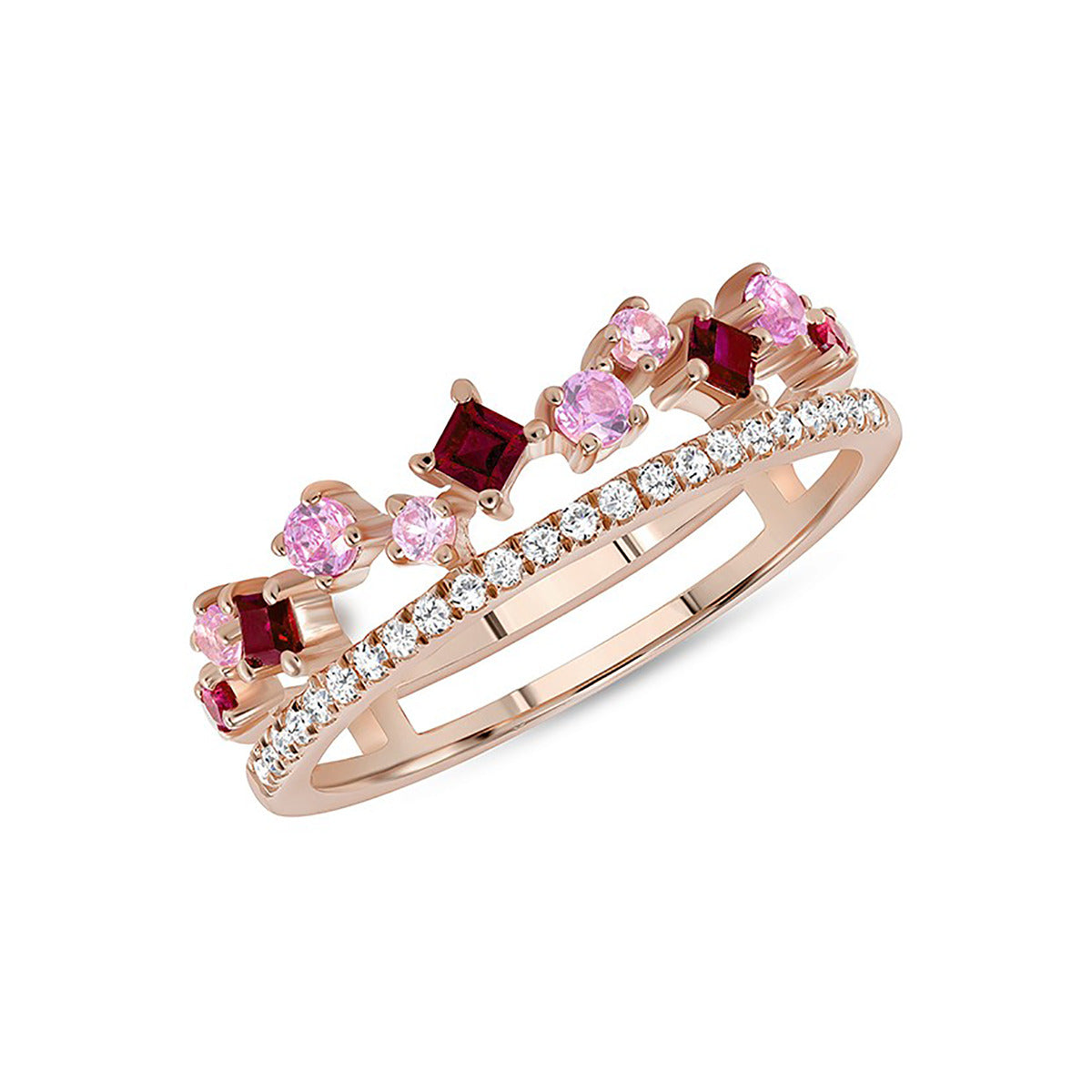 14K Rose Gold Pink Sapphire, Ruby and Diamond Ring