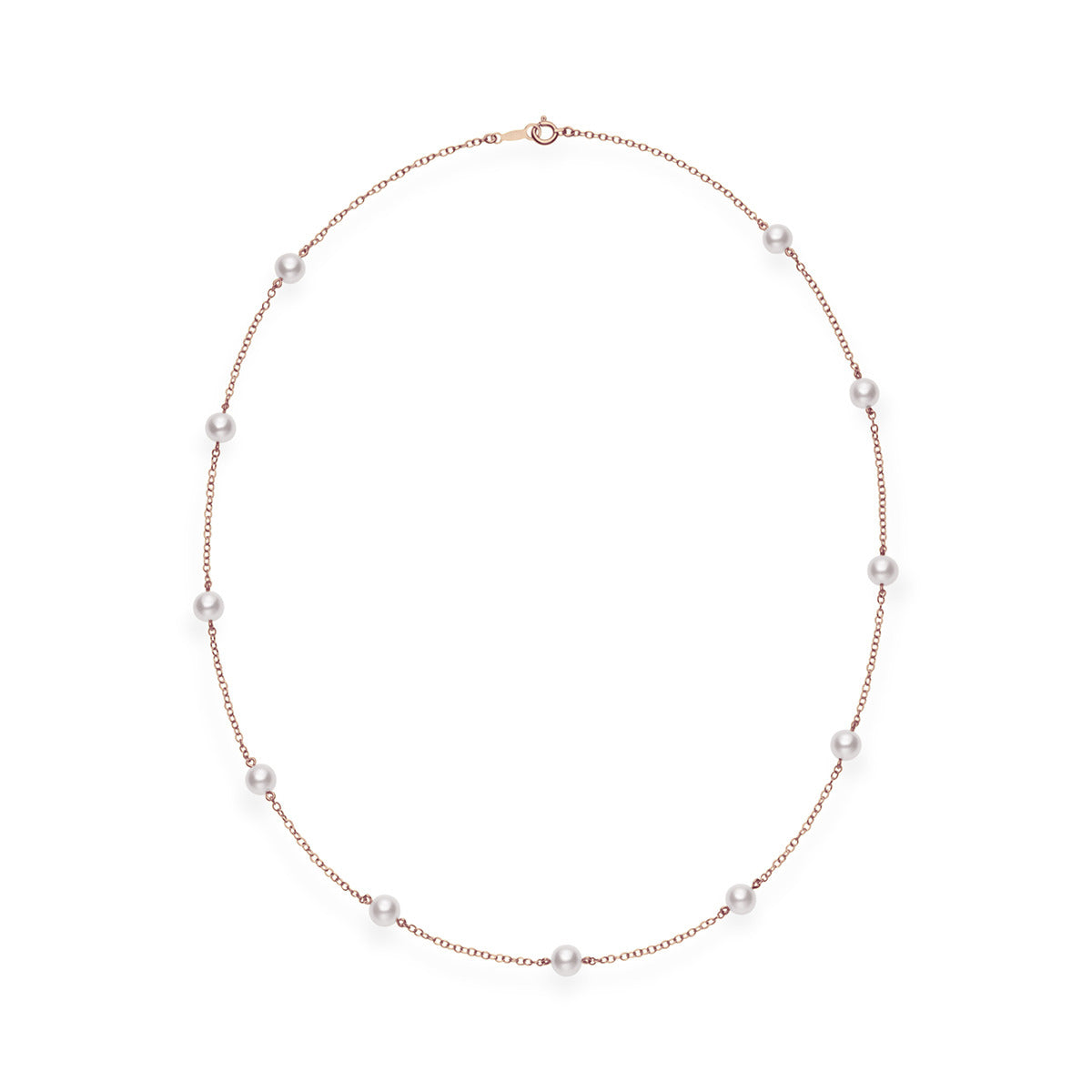 18-Inch Akoya Cultured Pearl Station Necklace in Rose Gold