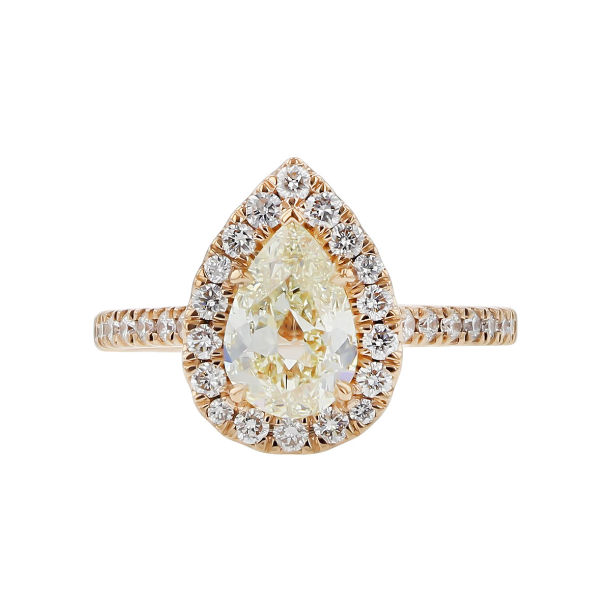 18K Gold Pear Shape Diamond Halo Engagement Ring