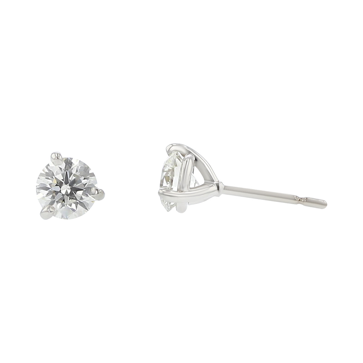 1.457ct Hearts On Fire Round Diamond 3-Prong Stud Earrings in 18K White Gold