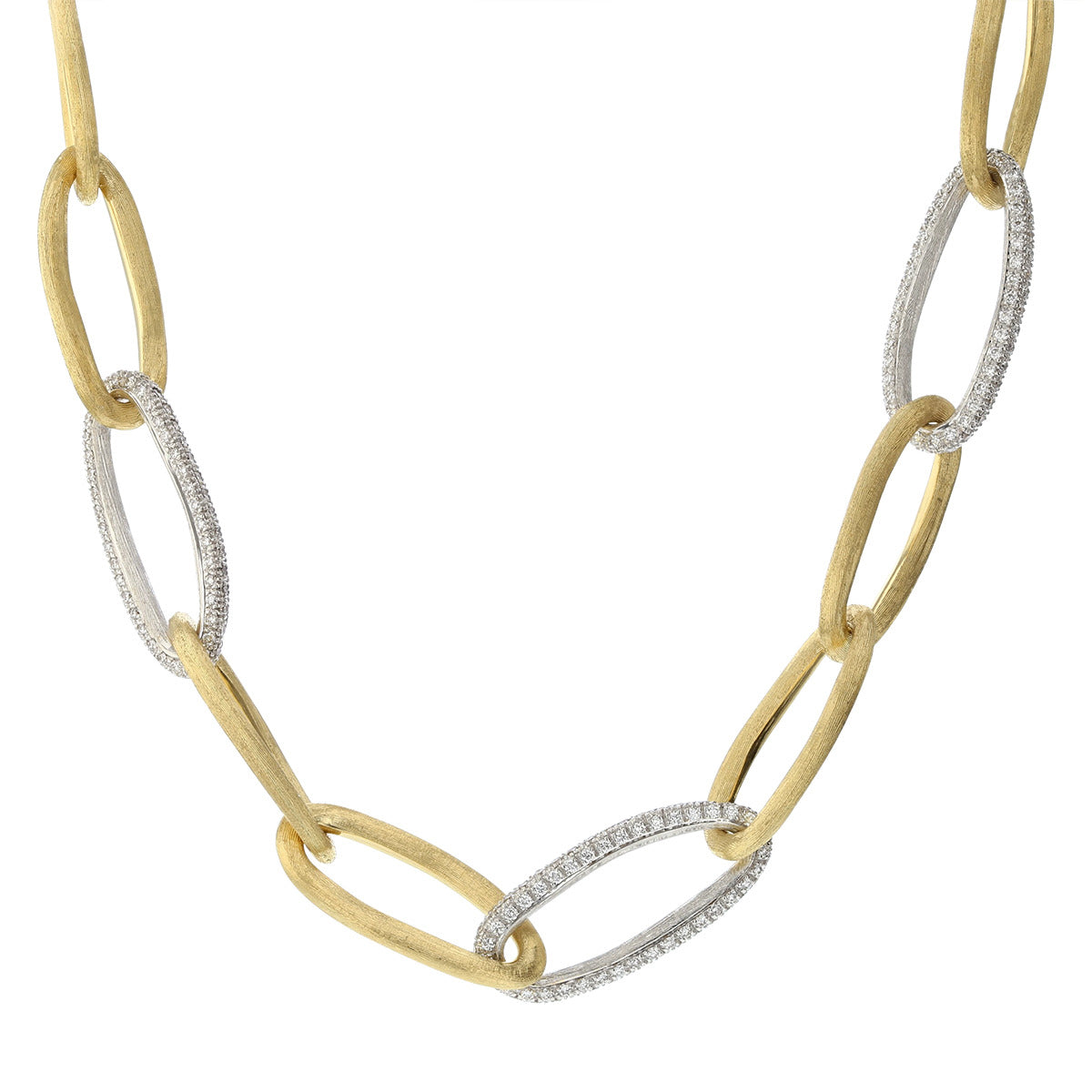 18K Yellow and White Gold Oval Link Diamond Necklace