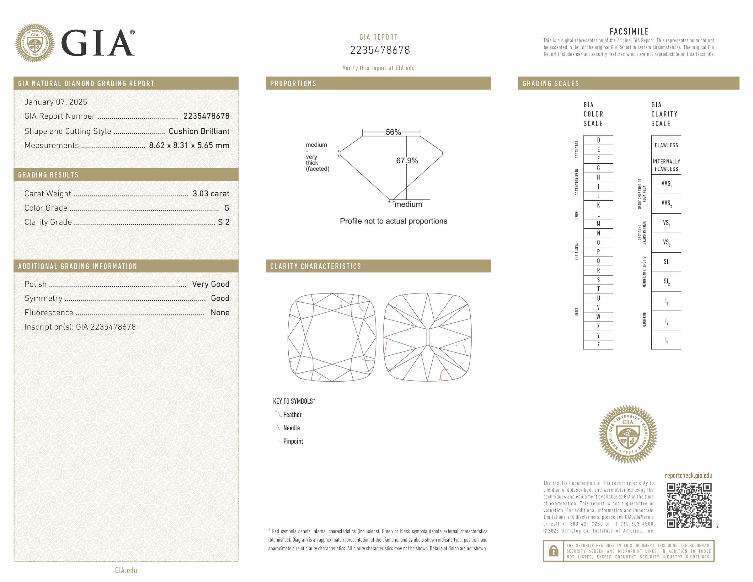 4-prong ring with a 3.03ct G/SI2 diamond, GIA inscribed, and 0.67ct diamonds, crafted in platinum, size 3.5.