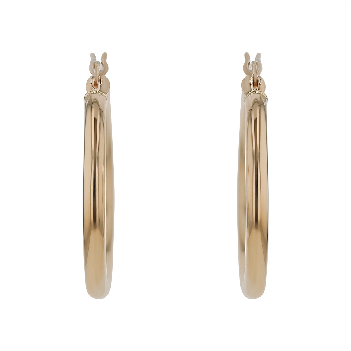 Polished 3x30mm hoop earrings crafted in 14K yellow gold with classic snap-back closures.