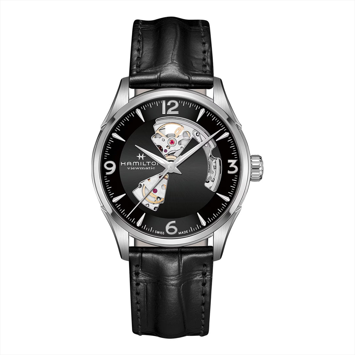 42mm Jazzmaster Open Heart Watch with Black Dial in Stainless Steel, Strap