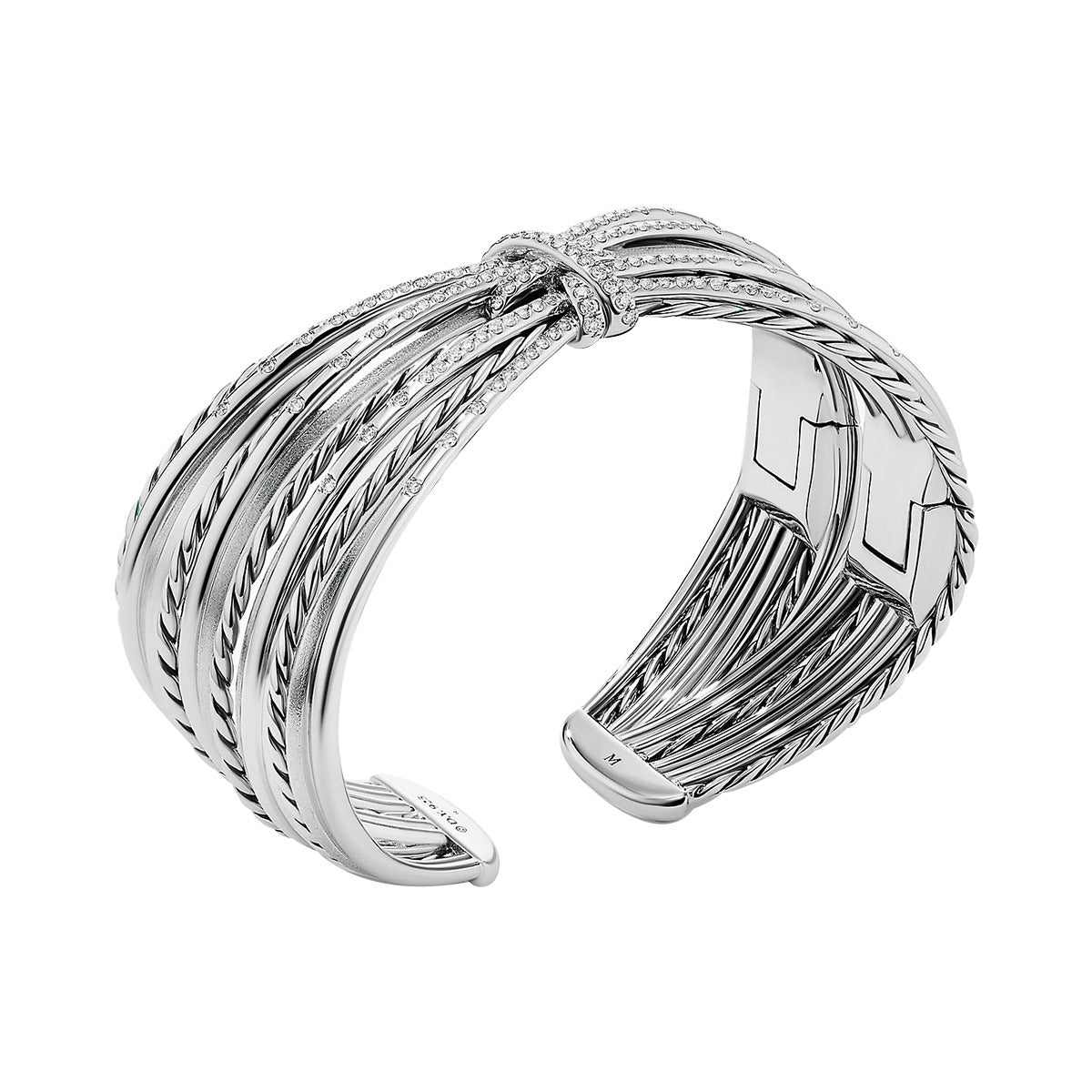 Angelika Four Point Cuff Bracelet in Sterling Silver with Pave Diamonds