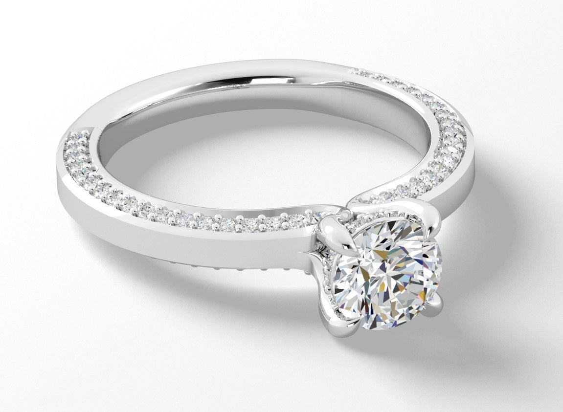 Aria 0.33ct Diamond Hidden Halo Ring Semi Mount in Platinum for 1.00ct Round Center
