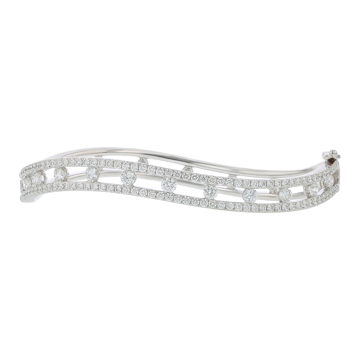 Floating Diamond Curved Bracelet in 18K White Gold