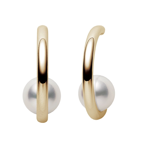 Classic Akoya A+ pearl semi-hoop earrings in 18K yellow gold.