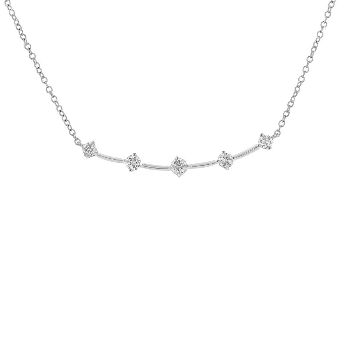 This 18K white gold Constellation necklace features 0.45ct of GH/VS diamonds set along a delicate wire design, offering a refined and modern look.