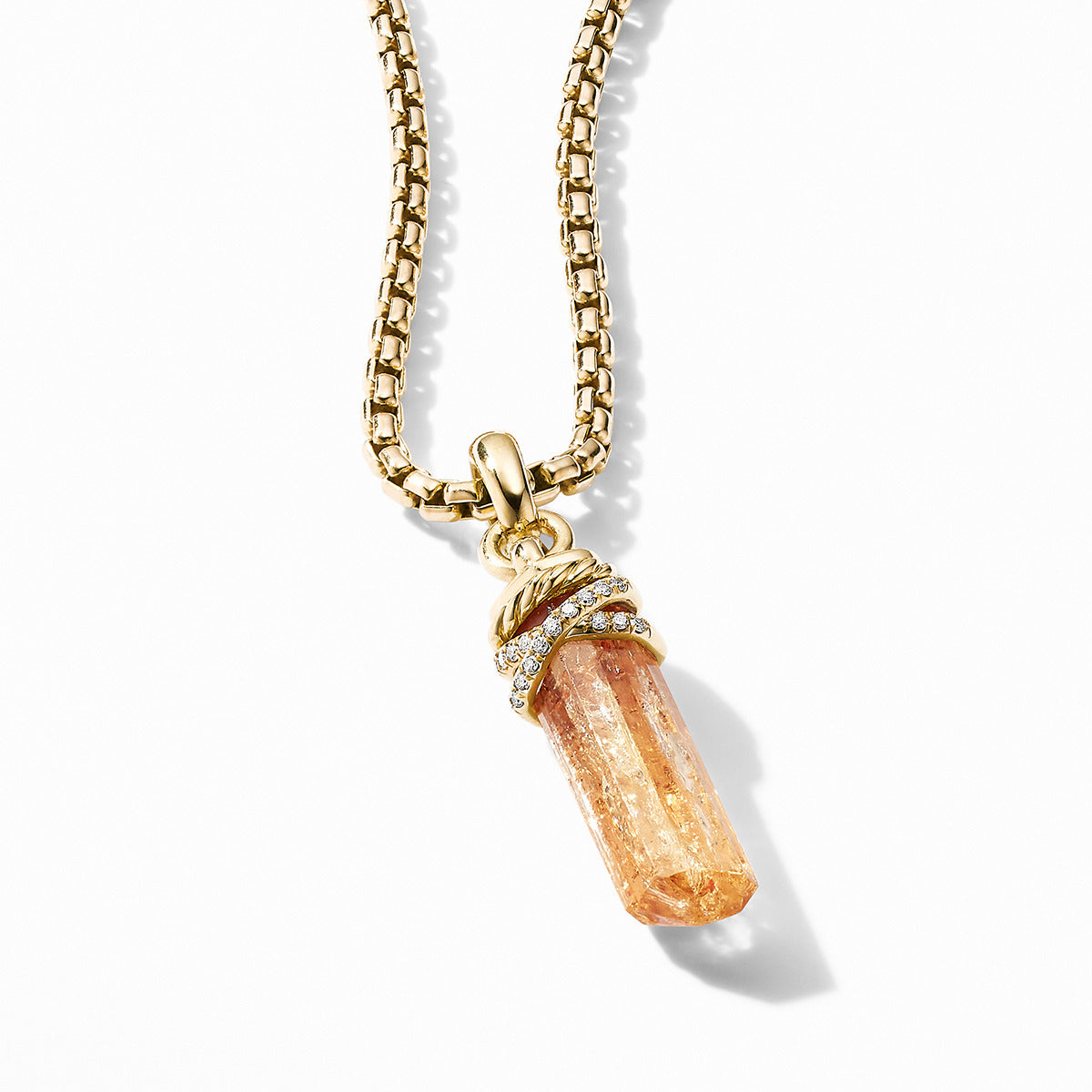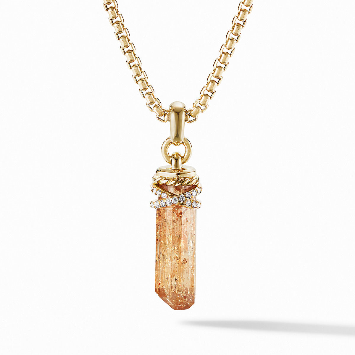 Crystal Wrapped Amulet with Imperial Topaz, 18K Yellow Gold and Pave Diamonds