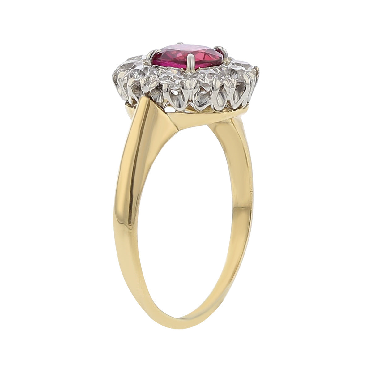 Edwardian Ruby and Diamond Halo Ring in Platinum and 18K Yellow Gold