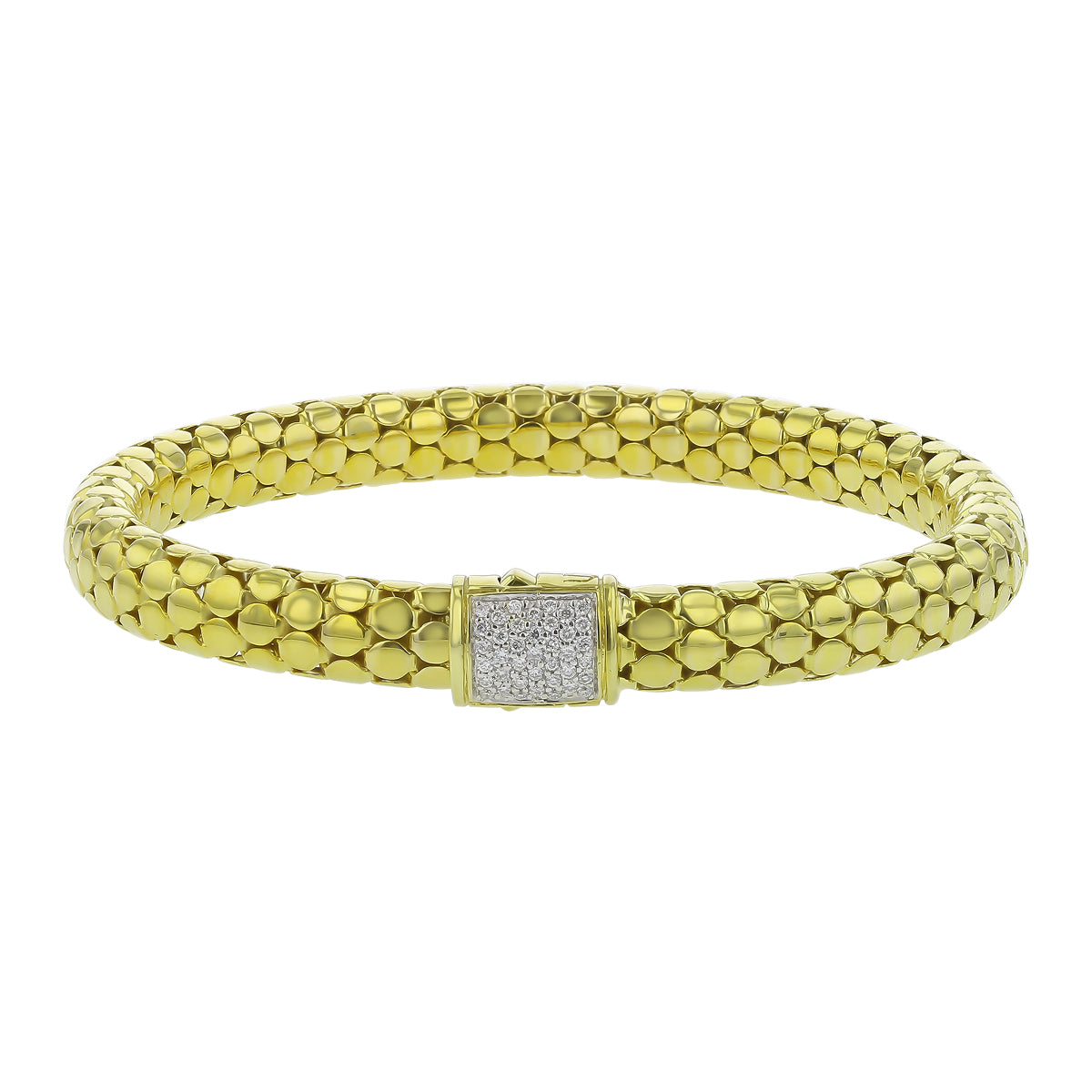This John Hardy bracelet features diamonds set in 18K yellow gold, with a length of 7 inches.
