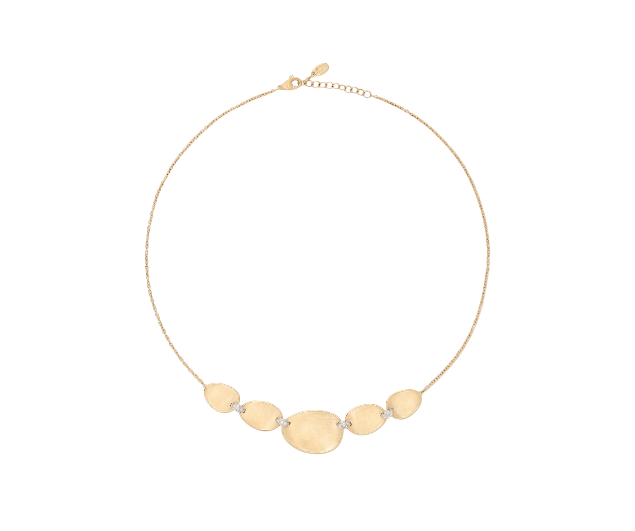 Lunaria necklace with 0.07ct diamonds, crafted in 18K yellow and white gold, 16.5 inches.