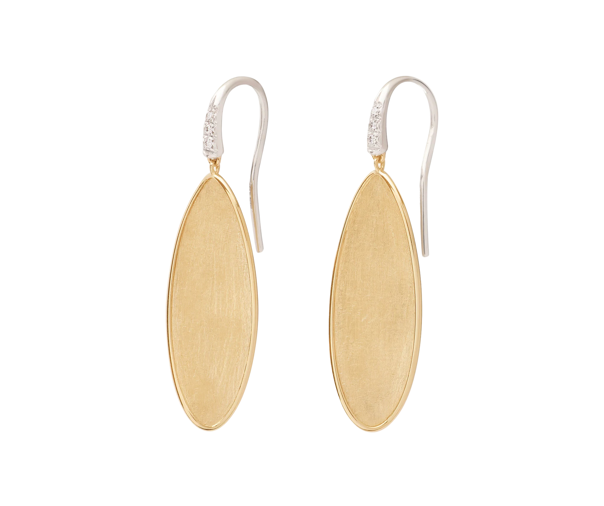 Lunaria Twist petal drop earrings with 0.04ct diamonds, crafted in 18K yellow and white gold.