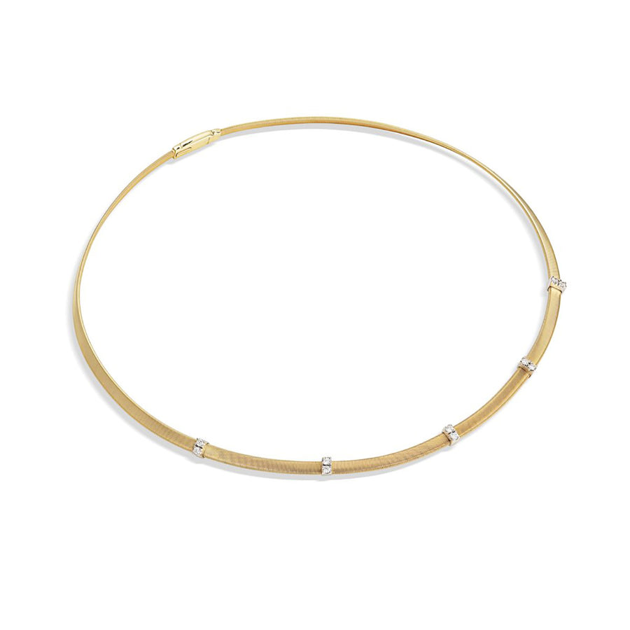 Masai hand coiled single strand collar necklace with 0.30ct diamonds, crafted in 18K yellow and white gold.