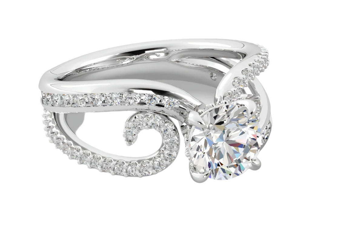 Open Loop 0.88ct Diamond Ring Semi Mount in Platinum for 1.50ct Round Center. Mount only; center stone not included.