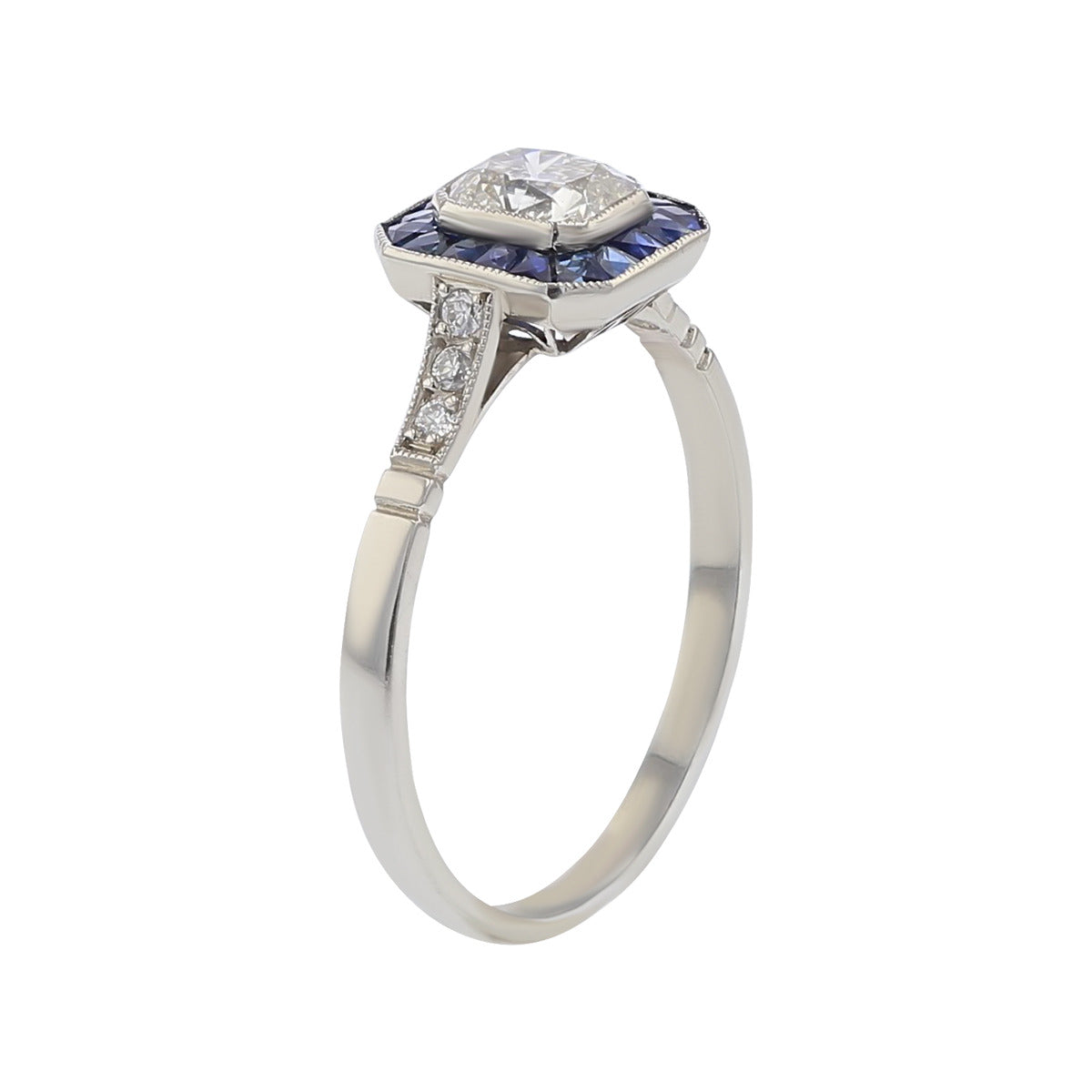 Platinum Radiant Diamond and Sapphire Halo Ring