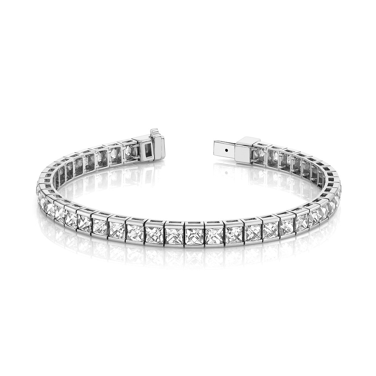 Platinum Square French-cut Diamond Tennis Bracelet