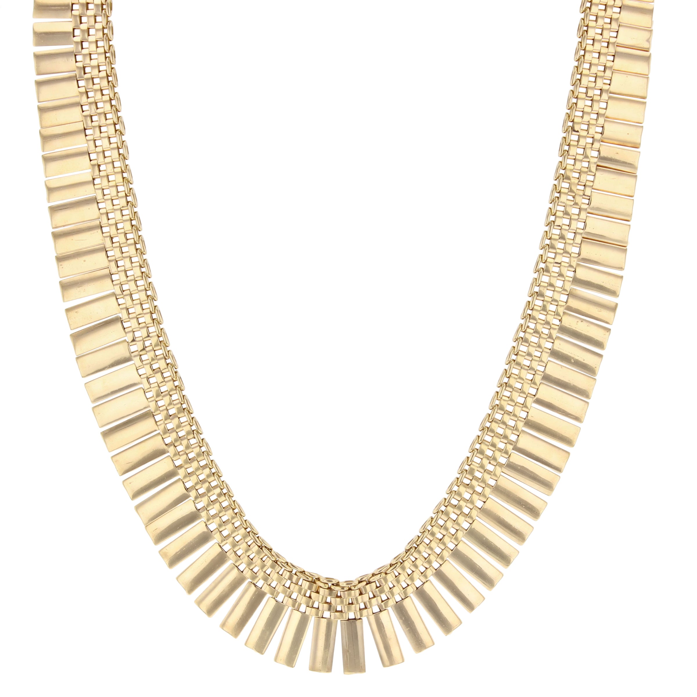 Retro brick mesh necklace with a rectangle concave tapered bottom and finished hidden clasp, crafted in 18K rose gold, 17 inches.