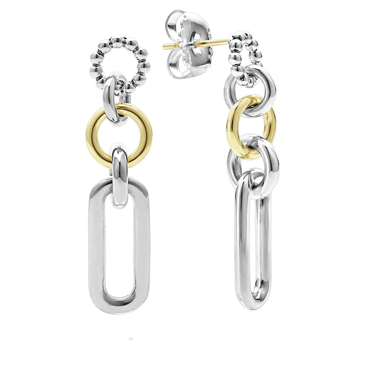 Signature Caviar 3-Part Circle and Oval Drop Earrings in Sterling Silver and 18K Yellow Gold
