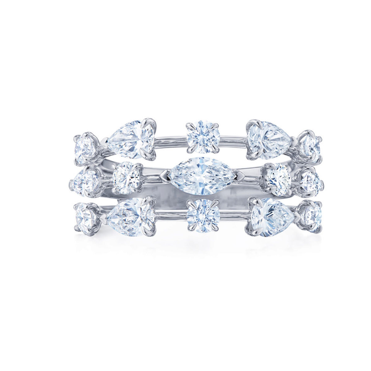 Three-Row Ring with Fancy Shape Diamonds