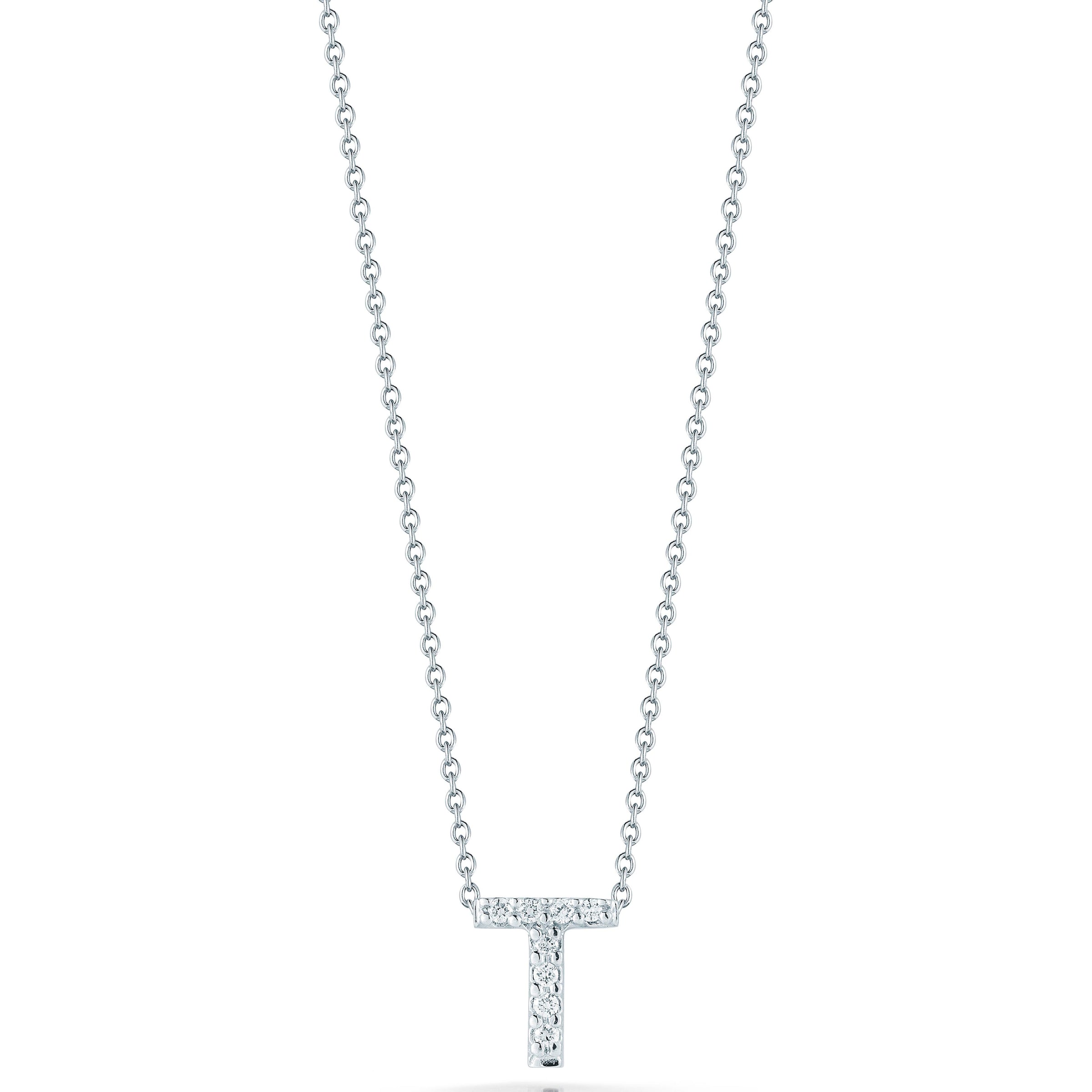 Tiny Treasures 0.04ct Diamond Love Letter "T" Necklace in 18K White Gold, 16-18" chain