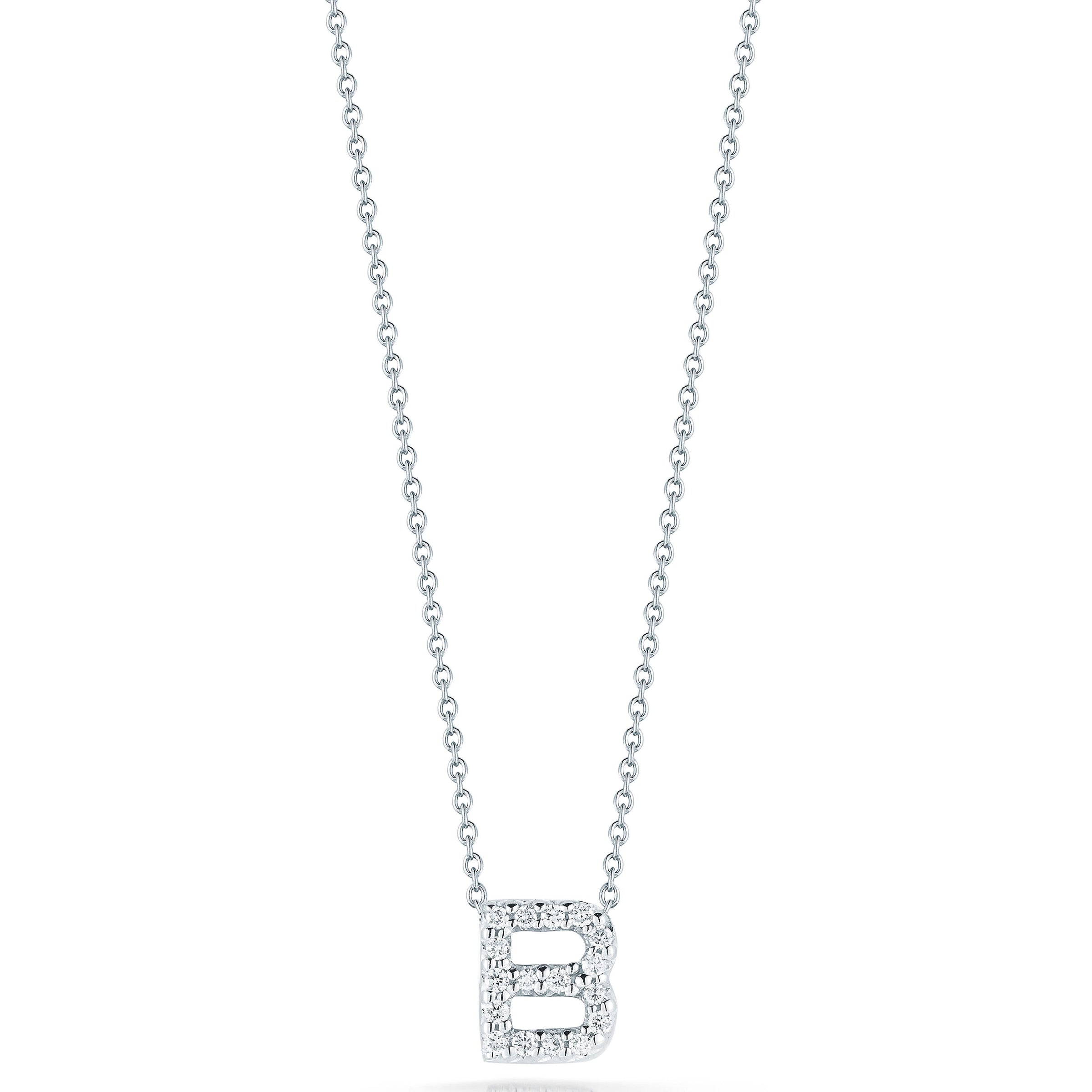 Tiny Treasures 0.06ct Diamond Love Letter "B" Pendant in 18K White Gold, 16-18" chain